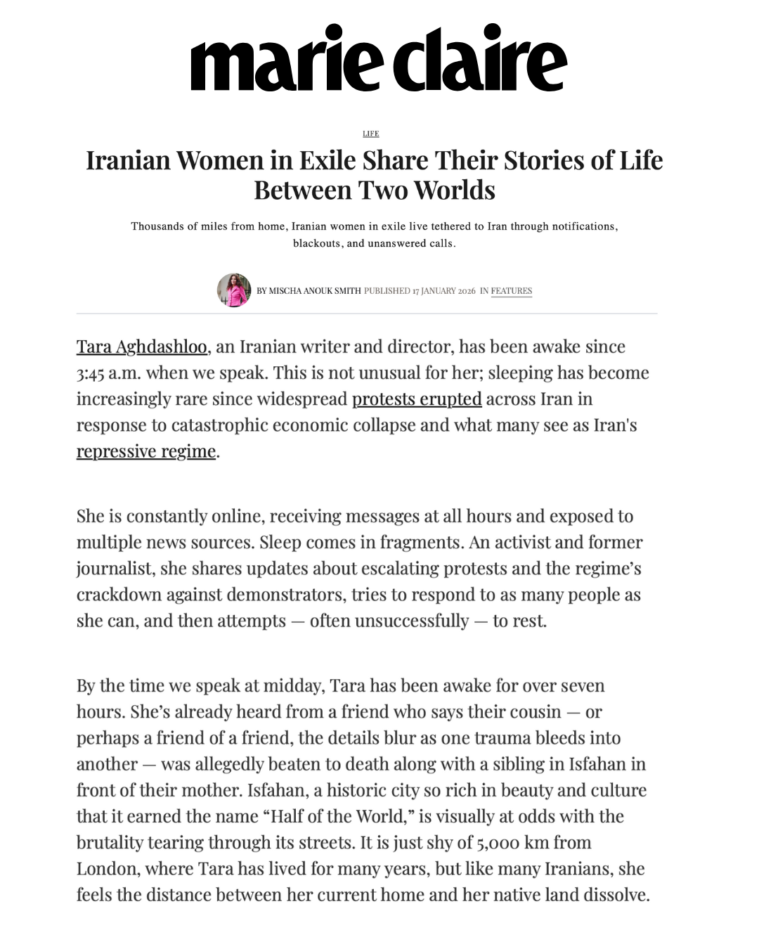 I was interviewed by Marie Claire UK alongside a few brilliant other Iranian-British women grappling with the pain of what has been unravelling back at home while we live here in London.